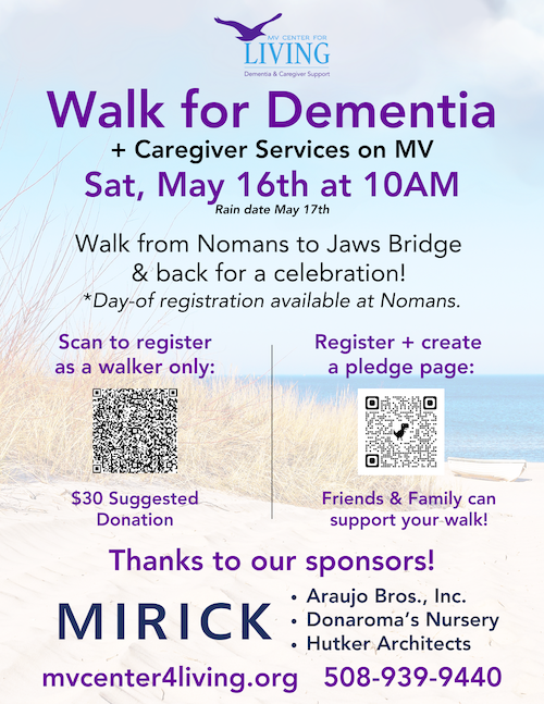Join us on Saturday, May 16th at 10AM for our Benefit Walk for Dementia & Caregiver Services on Martha’s Vineyard. The walk will be from Nomans to Jaws Bridge and back. Register below!